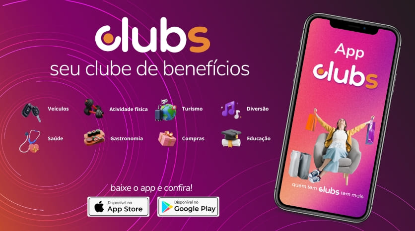 CLUBS, seu clube de benefícios com centenas de ofertas. Baixe o app e confira. Quem tem Clubs tem Mais!
